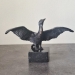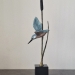 Uniek bronzen beeldje van een Ijsvogel op hout